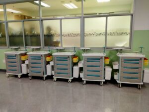 เหมาะสำหรับลูกค้า โรงพยาบาลแผนก ER ที่ต้องการ รถเข็นใส่อุปกรณ์ฉุกเฉินช่วยชีวิตน้ำหนักเบา รับประกัน 1 ปี